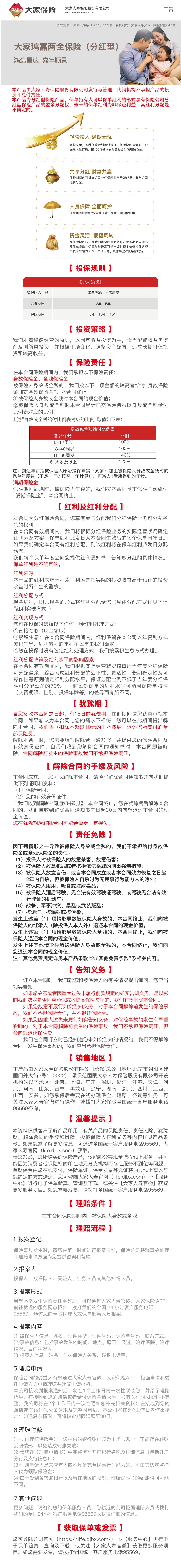 大家鸿嘉两全保险(分红型)