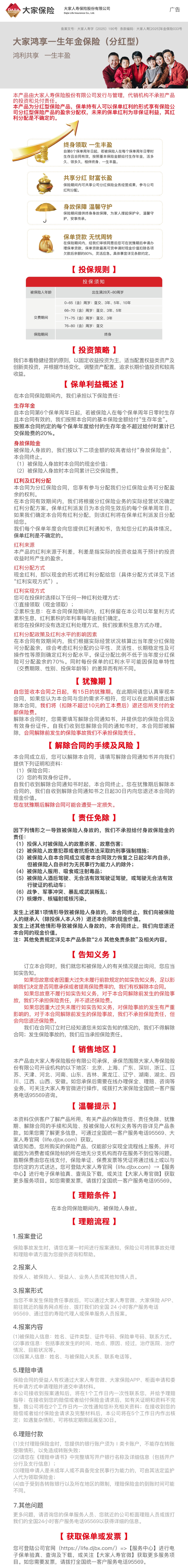 大家鸿享一生年金保险(分红型)