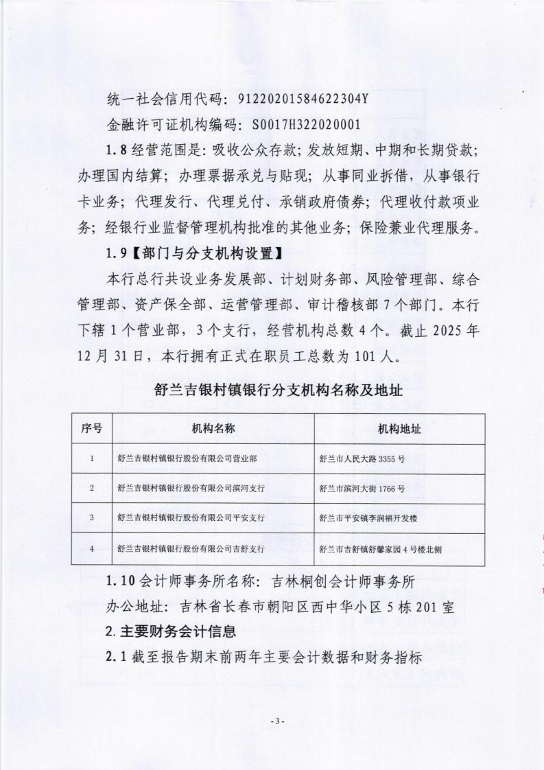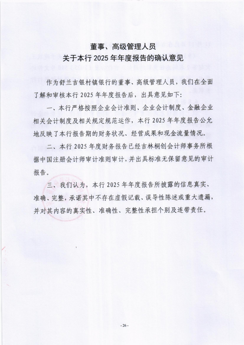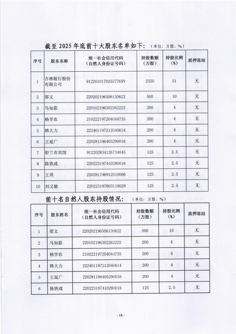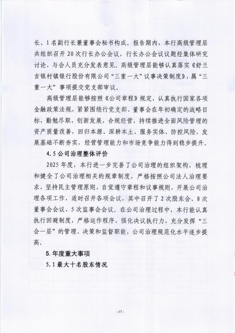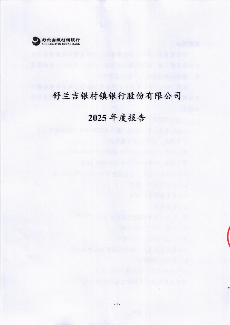 舒兰吉银村镇银行股份有限公司2025年度报告