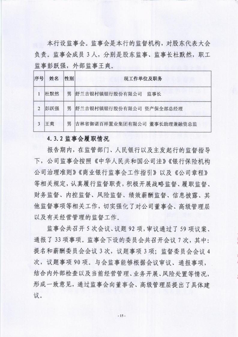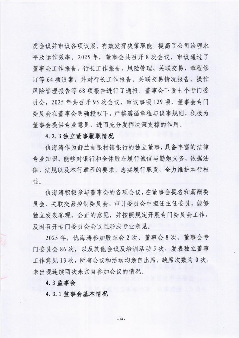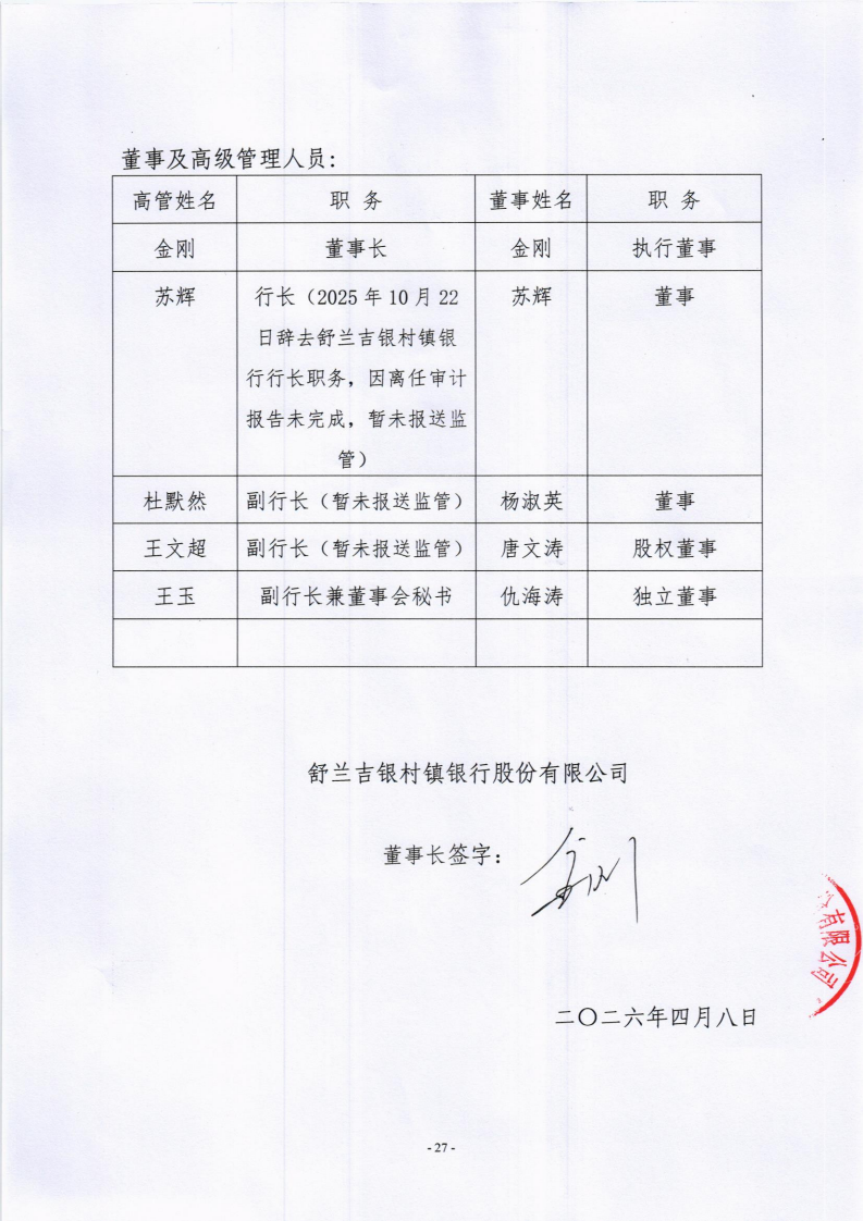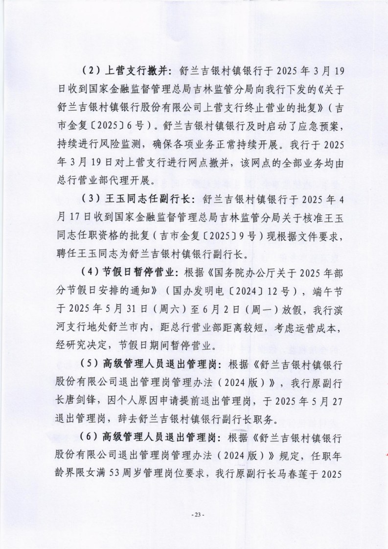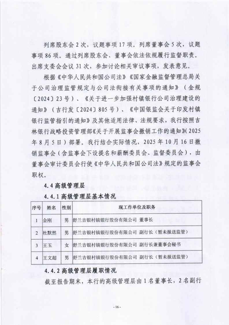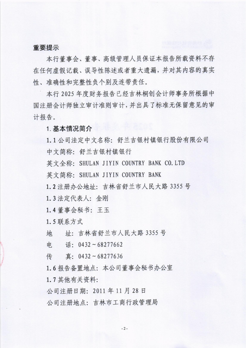 舒兰吉银村镇银行股份有限公司2025年度报告