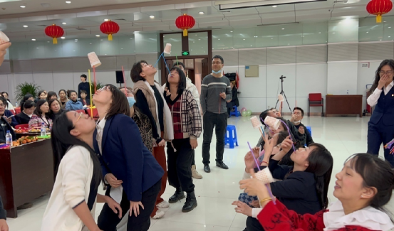 下午的元宵喜乐会活动,围绕“喜庆、欢快、互动、向上”的宗旨,以娱乐节目、互动游戏及现场猜灯谜的形式展开。