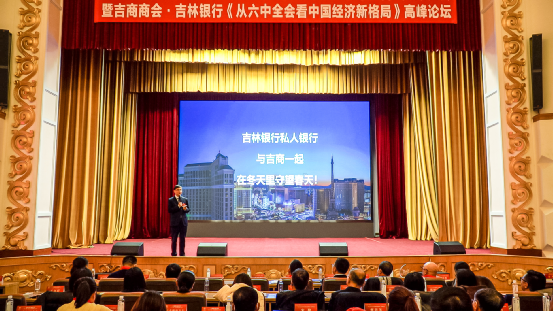 2021年12月19日 我行与吉林省吉商商会联合举办第二期“吉林 +系列大讲堂”暨“从党的十九届六中全会看中国经济新格局”高峰论坛,会上举行了“私人银行品牌发布会”。
